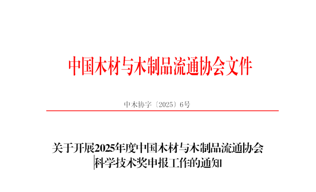 关于开展2025年度中国木材与木制品流通协会科学技术奖申报工作的通知