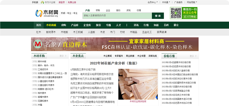 2000年,公司创办了中国木材网(www.chinatimber.org,后更名为木材网)。木材网立足于木材行业,整合上下游关联行业资源,构建行业动态、价格行情、供需情况及产品信息发布、展示平台,迅速成为国内访问量最高、注册会员最多、促成交易额最大的木材行业权威垂直商务网站。2011年,为创新经营模式、完善服务功能,重点建设和规范现代交易、服务和管理三大体系,木材网又率先推出了“木材商城”系统,建立了“有形市场”与“虚拟市场”互动机制,逐步实现在线商品信息发布、在线商业谈判、在线订购和交易等现代化商务活动,吸引了大批海内外木材商的加入。近年,公司还紧跟时代潮流,发力于移动互联网平台。依托微信平台,建设“木材网讯”订阅号和小程序,以及“东方兴业城”服务号和小程序;依托于抖音和微信视频号等短视频平台,建设短视频自媒体,备受业内关注。迄今,木材网及相关联自媒体根植于木材行业,通过全产业链、全渠道的布局和建设,已初步构建成多方位的、立体式的、创新型的、功能性的服务模式,受广大业内人士的一致认可和强烈推荐。